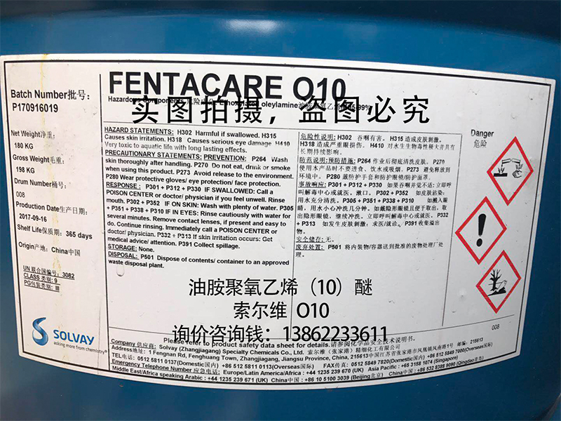 产品应用: | 油胺聚氧乙烯(10)醚/O10,作为抗静电剂、柔软剂等,广泛应用于纺织、化纤、皮革、树脂、油漆涂料等领域; 油胺聚氧乙烯(10)醚/O10,作为乳化剂、发用染色剂等,应用于个人护理用品领域; 油胺聚氧乙烯(10)醚/O10,作为润滑剂、防锈剂、缓蚀剂等,应用于金属加工领域; 油胺聚氧乙烯(10)醚/O10,作为分散剂、匀染剂等,应用于纺织、印染等领域; 油胺聚氧乙烯(10)醚/O10,作为抗静电剂等,应用于船舶漆中; 油胺聚氧乙烯(10)醚/O10,作为乳化剂、分散剂等,应用于高分子乳液中; 油胺聚氧乙烯(10)醚/O10,作为农药助剂; 油胺聚氧乙烯(10)醚/O10,作为焦化厂污水破乳剂,可使焦油、氨水快速分离 | |