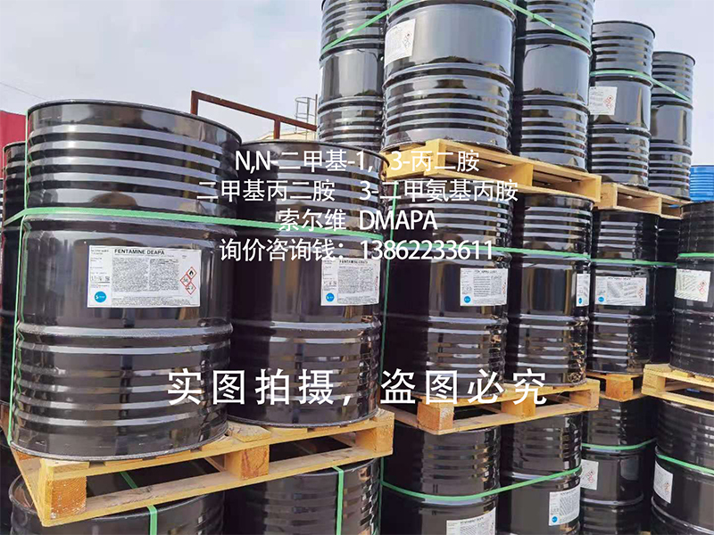 产品应用: | N,N-二甲基-1,3-丙二胺(二甲基丙二胺,3-二甲氨基丙胺,DMAPA)可合成农药中间体霜灭威; N,N-二甲基-1,3-丙二胺(二甲基丙二胺,3-二甲氨基丙胺,DMAPA)作为固化剂再环氧树脂行业应用; N,N-二甲基-1,3-丙二胺(二甲基丙二胺,3-二甲氨基丙胺,DMAPA)作为染料中间体,再在染料行业广泛应用; N,N-二甲基-1,3-丙二胺(二甲基丙二胺,3-二甲氨基丙胺,DMAPA)作为水处理单体产品的合成原料;N,N-二甲基-1,3-丙二胺(二甲基丙二胺,3-二甲氨基丙胺,DMAPA)在日化行业作为原料生产甜菜碱等产品; N,N-二甲基-1,3-丙二胺(二甲基丙二胺,3-二甲氨基丙胺,DMAPA)作为离子交换树脂的原料使用; N,N-二甲基-1,3-丙二胺(二甲基丙二胺,3-二甲氨基丙胺,DMAPA)作为医药中间体,合成各种医药类产品; N,N-二甲基-1,3-丙二胺(二甲基丙二胺,3-二甲氨基丙胺,DMAPA)在聚氨酯行业作为聚氨酯催化剂使用; | |