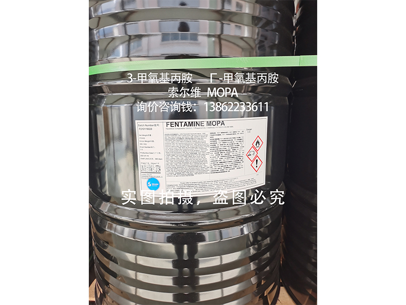 产品应用: | 3-甲氧基丙胺(γ-甲氧基丙胺,甲氧基丙胺,MOPA)作为染料中间体,再在染料行业广泛应用; 3-甲氧基丙胺(γ-甲氧基丙胺,甲氧基丙胺,MOPA)在水处理行业作为有广泛应用; 3-甲氧基丙胺(γ-甲氧基丙胺,甲氧基丙胺,MOPA)在电子行业作为蚀刻液原料使用; 3-甲氧基丙胺(γ-甲氧基丙胺,甲氧基丙胺,MOPA)在环氧树脂行业作为固化剂使用; | |