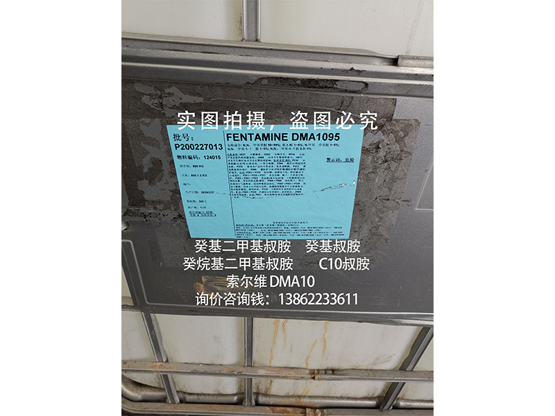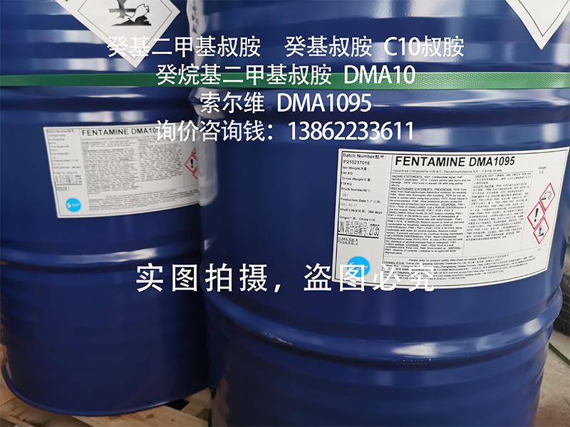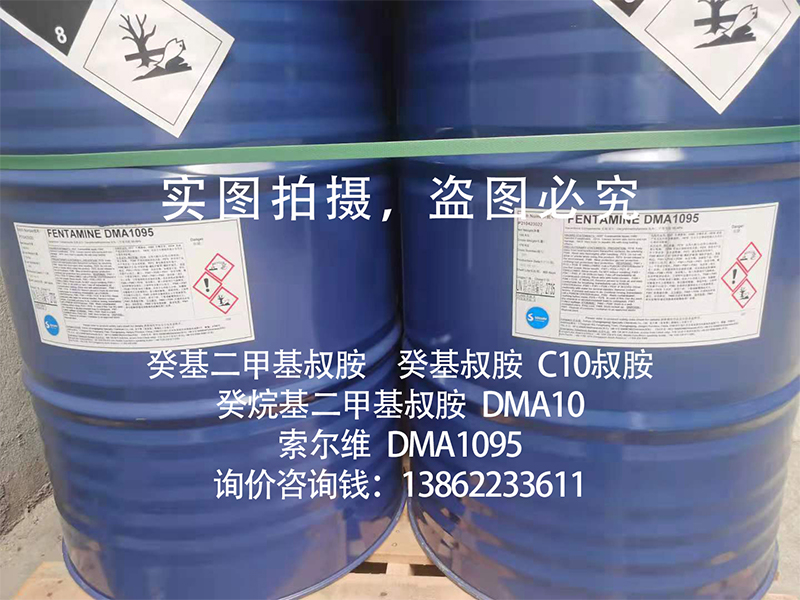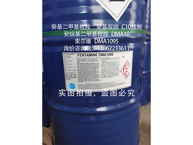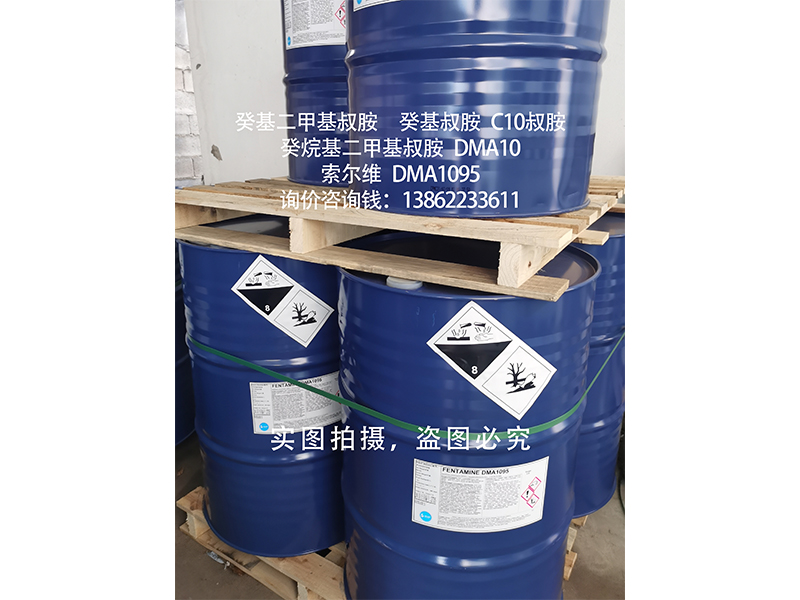 安全防护 | 癸基二甲基叔胺(癸基叔胺,DMA10,癸烷基二甲基叔胺)为化工合成中间体原料,使用过程中请避免与眼睛及皮肤接触,若有接触,请及时用大量清水冲洗并送医诊治; |