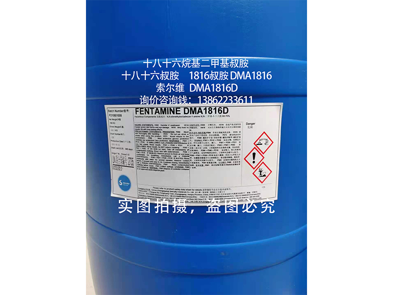 安全防护 | 十八/十六烷基二甲基叔胺(十八十六叔胺,1816叔胺,DMA1816)为化工合成中间体原料,使用过程中请避免与眼睛及皮肤接触,若有接触,请及时用大量清水冲洗并送医诊治; |
