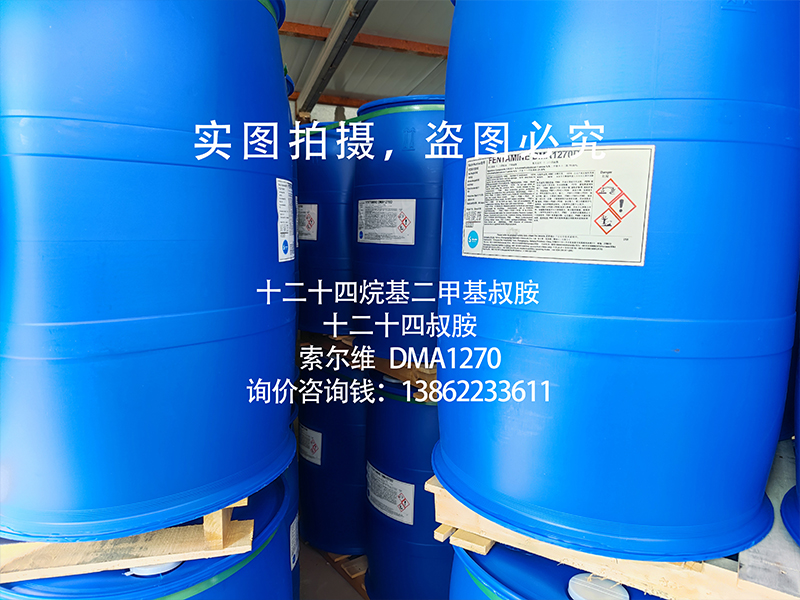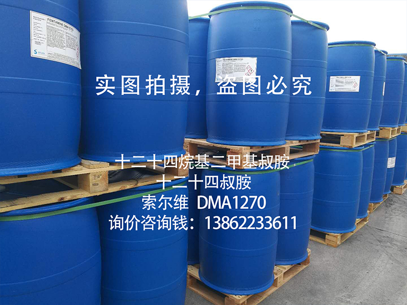 产品应用: | 十二十四烷基二甲基叔胺(十二十四叔胺,1214叔胺,DMA1270)为生产阳离子季铵盐的主原料,可以氯化苄反应生产苄基季铵盐1227,广泛应用于杀菌剂,纺织,造纸助剂等行业; 十二十四烷基二甲基叔胺(十二十四叔胺,1214叔胺,DMA1270)可与氯甲烷、硫酸二甲酯、硫酸二乙酯等季铵化原料反应生成阳离子季铵盐,广泛应用于纺织,日化,油田等行业; 十二十四烷基二甲基叔胺(十二十四叔胺,1214叔胺,DMA1270)亦可与氯乙酸钠反应生产两性表面活性剂甜菜碱BS-1214; 十二十四烷基二甲基叔胺(十二十四叔胺,1214叔胺,DMA1270)与双氧水反应可以生产氧化胺作为起泡剂,发泡剂使用; | |