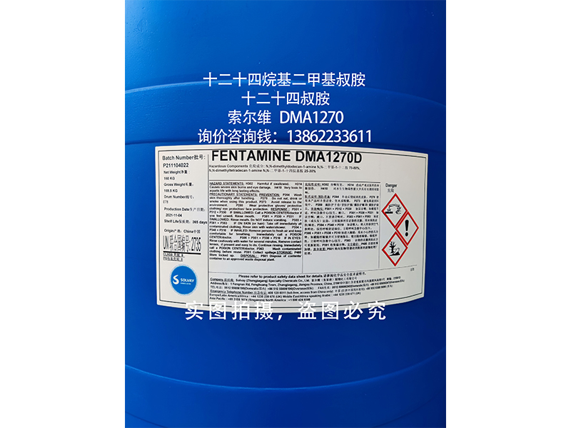 安全防护 | 十二十四烷基二甲基叔胺(十二十四叔胺,1214叔胺,DMA1270)为化工合成中间体原料,使用过程中请避免与眼睛及皮肤接触,若有接触,请及时用大量清水冲洗并送医诊治; |
