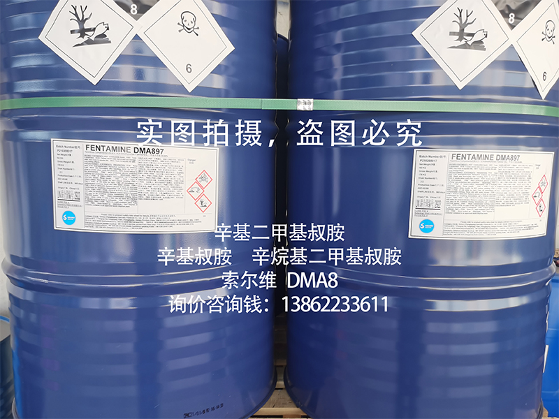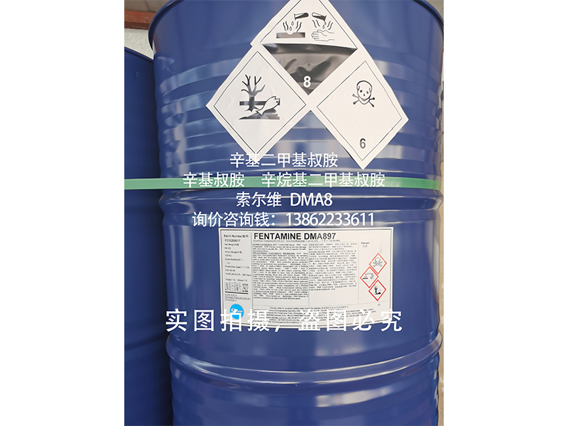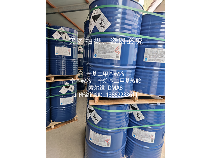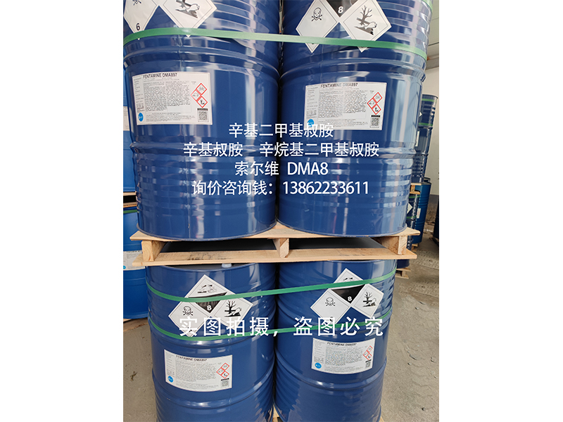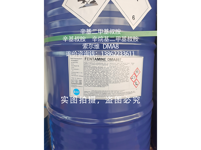 安全防护 | 辛基二甲基叔胺(辛基叔胺,DMA8)为化工合成中间体原料,使用过程中请避免与眼睛及皮肤接触,若有接触,请及时用大量清水冲洗并送医诊治; |