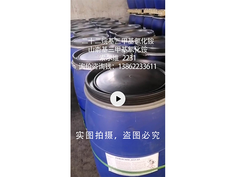 包装 | 二十二烷基三甲基氯化铵(2231,山嵛基三甲基氯化铵)为20,80公斤/桶包装;贮于室内阴凉通风处,防潮、严防曝晒,贮存期十二个月。 | |