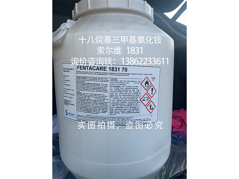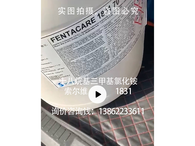 产品应用: | 十八烷基三甲基氯化铵(1831)具有杀菌,防霉的功效; 十八烷基三甲基氯化铵(1831)具有优良的柔软作用,广泛应用于香波、护发类产品,作为织物柔软剂使用,能织物纤维蓬松,手感柔软。 十八烷基三甲基氯化铵(1831)在颜料,染料等行业中,可作为乳化剂使用,在沥青行业作为乳化剂使用; 十八烷基三甲基氯化铵(1831)广泛应用于有机膨润土行业,作为改性剂,下由产品广泛应用于涂料,油田钻井助剂等行业; 十八烷基三甲基氯化铵(1831)亦可作为抗静电剂使用; 我公司的十八烷基三甲基氯化铵(1831)有固体和膏体两种规格,膏体不需要加热即可使用,更加方便下游使用。 | |