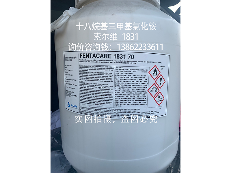 安全防护 | 十八烷基三甲基氯化铵(1831)为化工合成中间体原料,使用过程中请避免与眼睛及皮肤接触,若有接触,请及时用大量清水冲洗并送医诊治; |