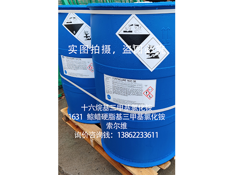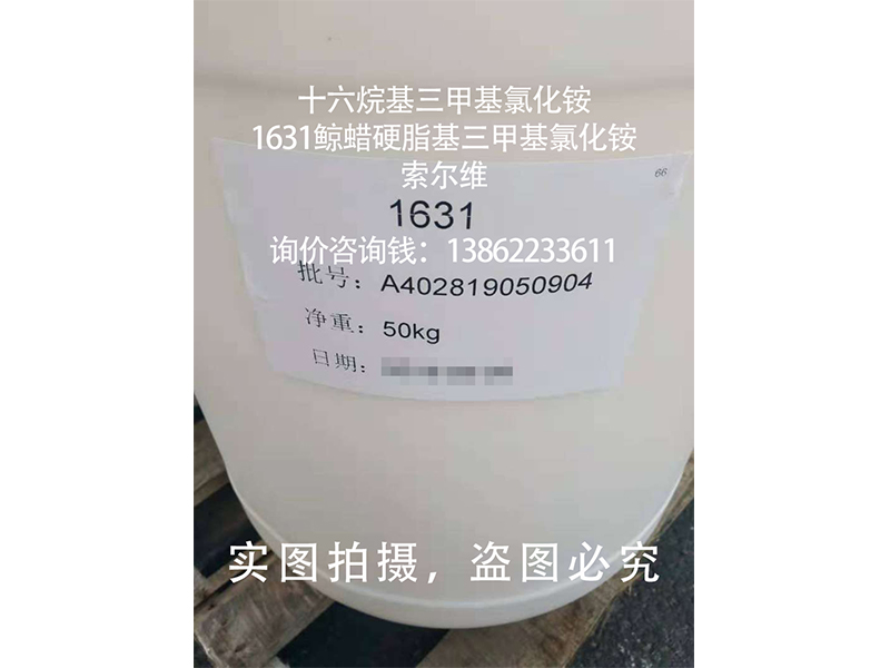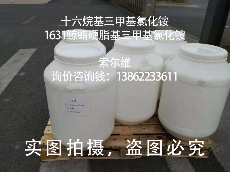 产品应用: | 十六烷基三甲基氯化铵(1631,鲸蜡硬脂基三甲基氯化铵)具有杀菌,防霉的功效; 十六烷基三甲基氯化铵(1631,鲸蜡硬脂基三甲基氯化铵)具有优良的柔软作用,广泛应用于香波、护发类产品,织物柔软剂等产品中。 十六烷基三甲基氯化铵(1631,鲸蜡硬脂基三甲基氯化铵)在颜料,染料等行业中,可作为乳化剂使用,在沥青行业作为乳化剂使用; 十六烷基三甲基氯化铵(1631,鲸蜡硬脂基三甲基氯化铵)在油田行业钻凿深井时,用作抗高温油包水乳化泥浆的乳化剂,也可作乳胶工业的防粘剂; 十六烷基三甲基氯化铵(1631,鲸蜡硬脂基三甲基氯化铵)具有独特相转移催化功能,广泛应用于精细化工,医药合成等行业; | |
