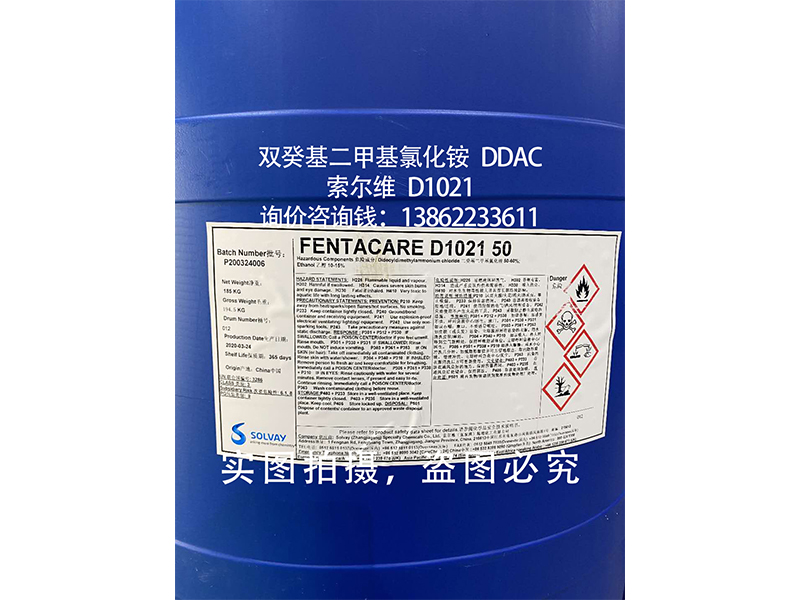 产品应用: | 双癸基二甲基氯化铵(D1021,DDAC)具有强烈的杀菌功效,是一种广谱的杀菌剂,杀菌效果强于1227(十二烷基二甲基苄基氯化铵,苯扎氯铵),广泛应用于工业水处理,畜牧业杀菌,游泳池杀菌等行业; 双癸基二甲基氯化铵(D1021,DDAC)具有优良的柔软作用; 双癸基二甲基氯化铵(D1021,DDAC)具有良好的乳化作用; 双癸基二甲基氯化铵(D1021,DDAC)亦可作为抗静电剂使用; 双癸基二甲基氯化铵(D1021,DDAC)在油田行业可作为油田回注水杀菌剂,广泛应用于二次采油回注水杀菌,水溶性好,杀菌效果强烈,对于已产生耐药性的细菌具有强烈的杀灭作用,适合于各种环境。 双癸基二甲基氯化铵(D1021,DDAC)在医药卫生行业作为消毒杀菌剂使用; | |