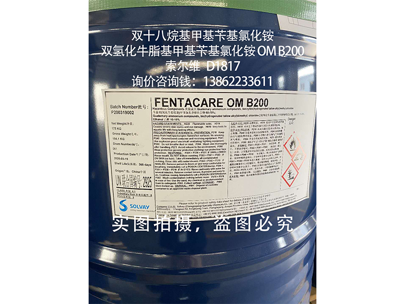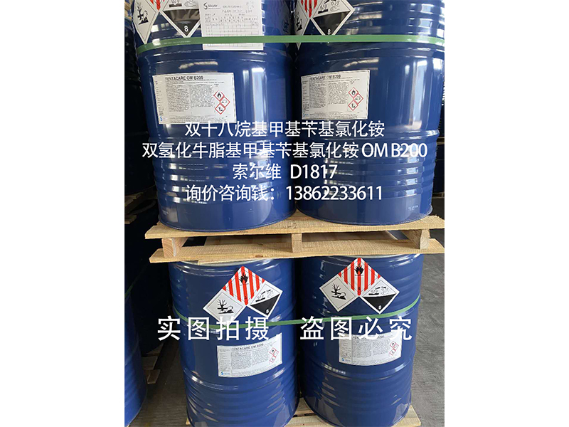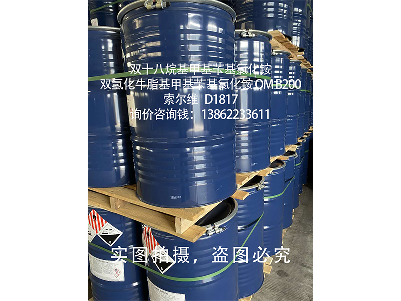 包装 | 双十八烷基甲基苄基氯化铵(D1817,双氢化牛脂基甲基苄基氯化铵)为50,175公斤/桶包装;贮于室内阴凉通风处,防潮、严防曝晒,贮存期十二个月。 | |
